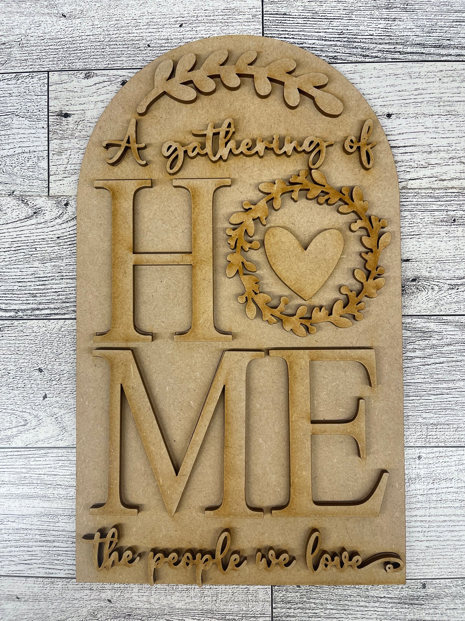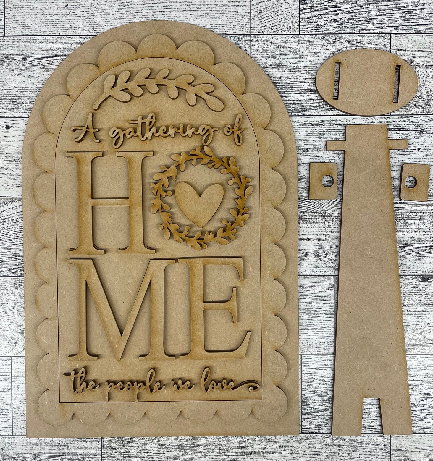 Home A gathering of the people we Love Arch Insert cutouts unpainted wooden cutouts, ready for you to paint
